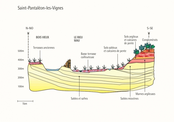 Vignoble : il est tout entier situé sur la commune de Saint-Pantaléon au sud du département de la Drôme sur la route de Nyons.
